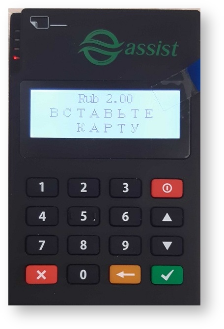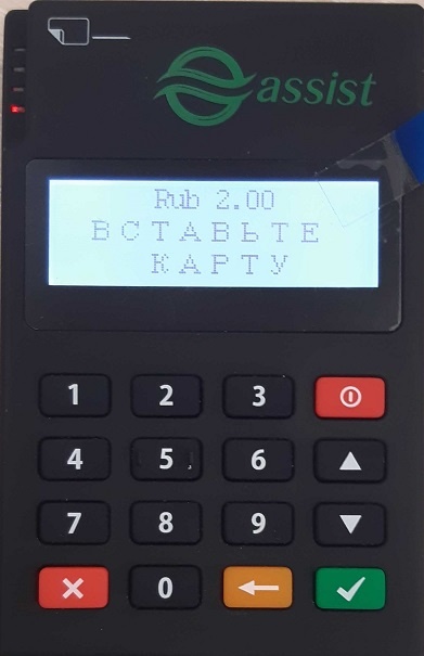 При инициализации оплаты экране беспроводного терминала появляется предложение вставить карту.