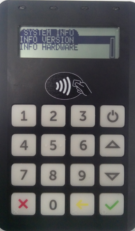 Далее следует выбрать пункт меню «SYS INFO» с помощью кнопок со стрелками вверх-вниз. Выбор пункта меню следует подтвердить нажатием кнопки «ОК» с зеленой галочкой.