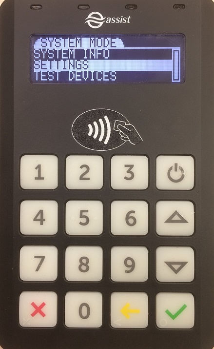 Для разрешения соединения беспроводного терминала с внешними устройствами (например, со смартфоном) необходимо проверить наличие описанной ниже настройки. Для этого следует выбрать пункт меню «SETTINGS»: