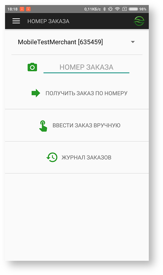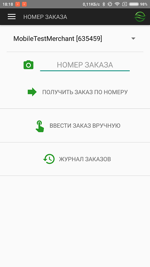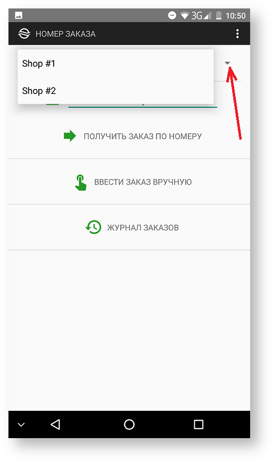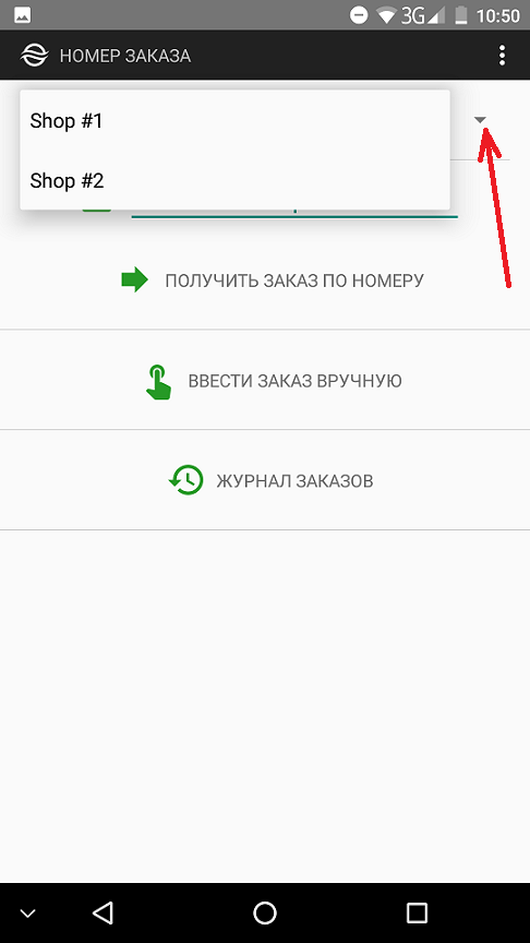 Если курьер обслуживает несколько магазинов в рамках одной компании, то перед оплатой заказа или просмотром журнала заказов следует выбрать нужный магазин. По умолчанию выбран магазин последнего проведенного платежа.