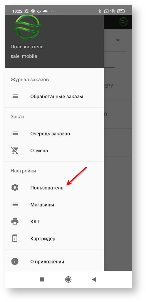 Просмотр настроек пользователя осуществляется путем выбора раздела «Пользователь» секции «Настройки» в слайд-меню левой боковой панели