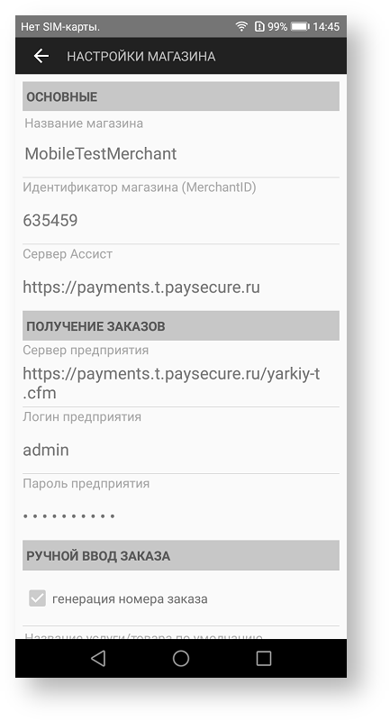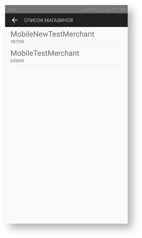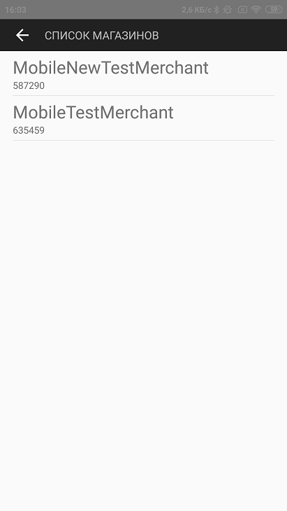 В разделе «Магазины» отображаются идентификаторы предприятий (мерчантов) в АПК Ассист для приема платежей. Для каждого магазина в АПК Ассист выполняются собственные настройки, которые доступны для просмотра в приложении после выбора конкретного магазина.