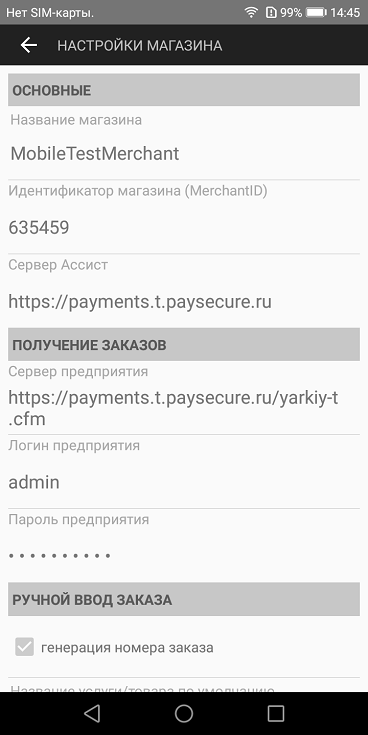 В разделе «Название магазина» отображается название магазина, которое будет отображаться в дальнейшем на экране приложения при проведении платежей.