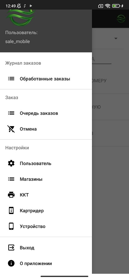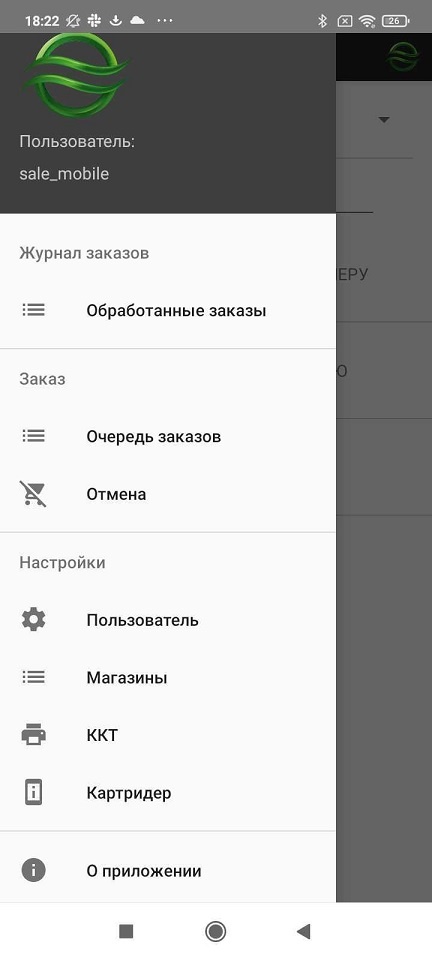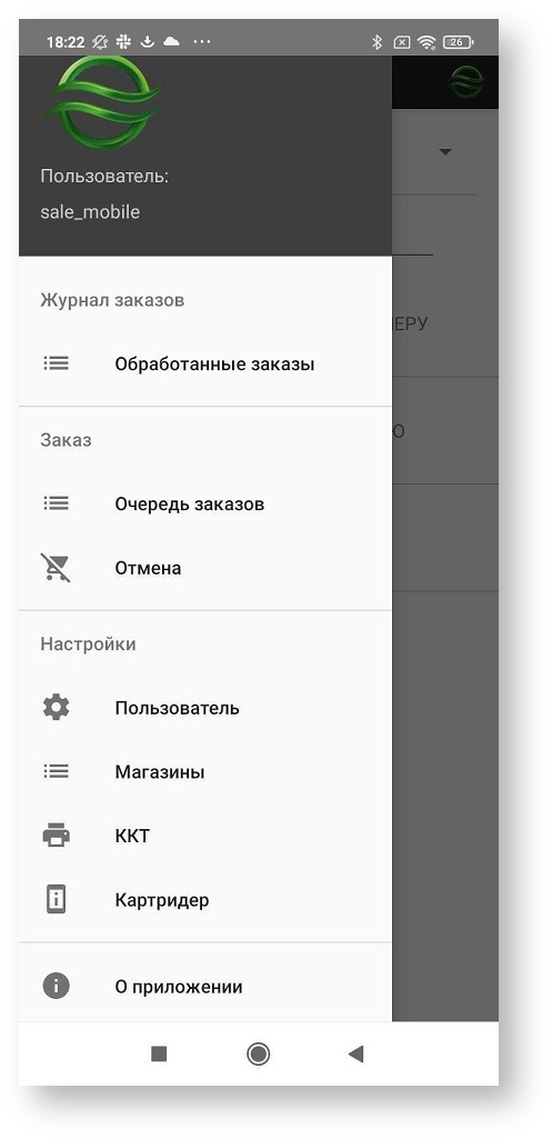 Для просмотра настроек приложения следует воспользоваться слайд-меню левой боковой панели. Все настройки выполняются в АПК Ассист и передаются в приложение при регистрации.