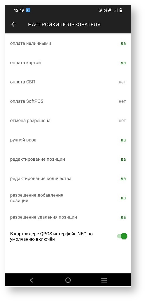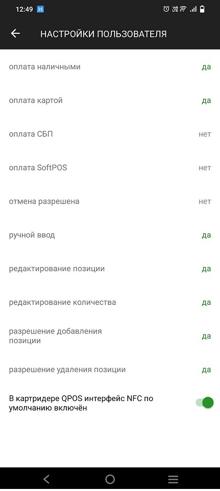 Если переключатель включен, то для оплаты по NFC можно будет сразу прикладывать карту к беспроводному терминалу QPOS.