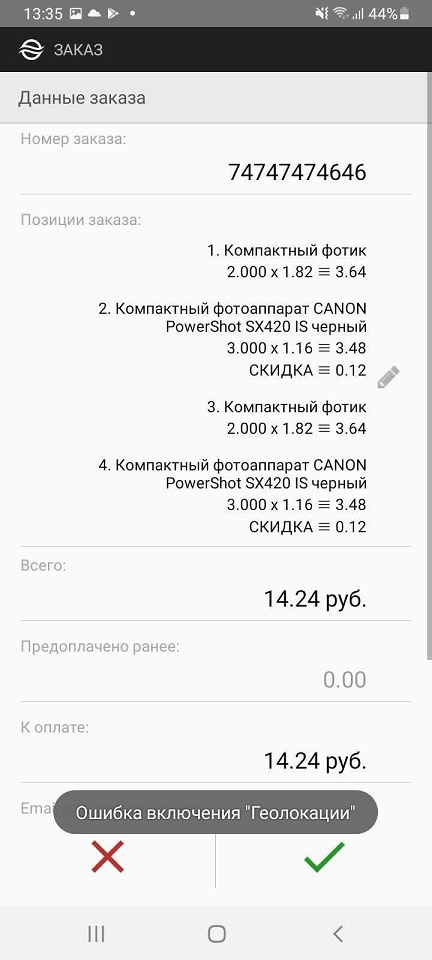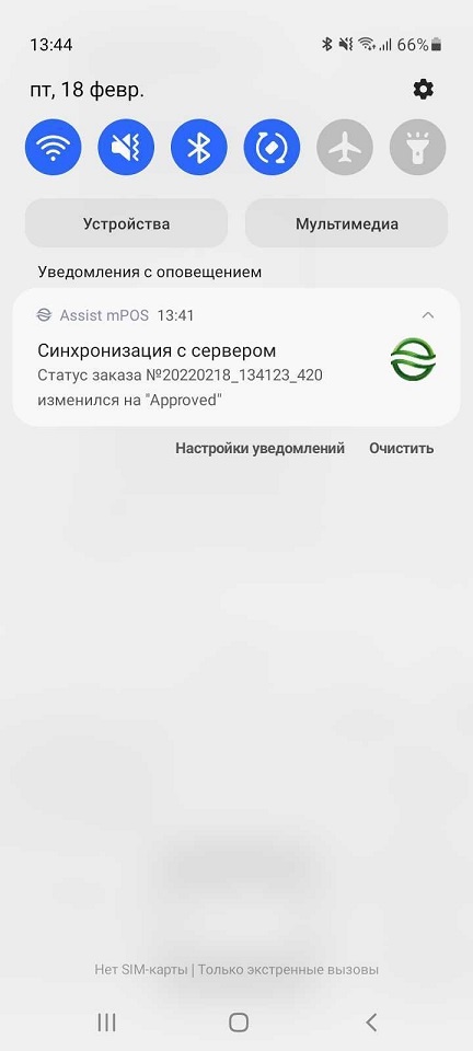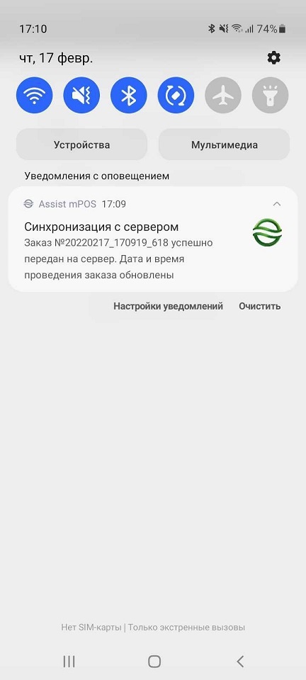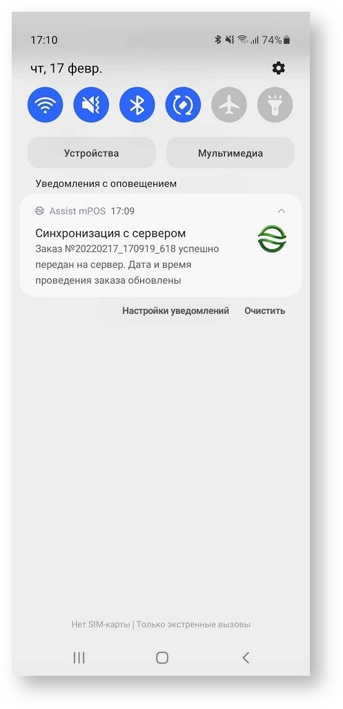 При запуске приложения дополнительно осуществляется проверка наличия заказов за последние 3 суток, которые были оплачены OFFLINE или имели статус «В процессе». Информация по таким заказам автоматически обновляется. Результаты обновления отображаются в виде уведомлений от приложения на смартфоне.