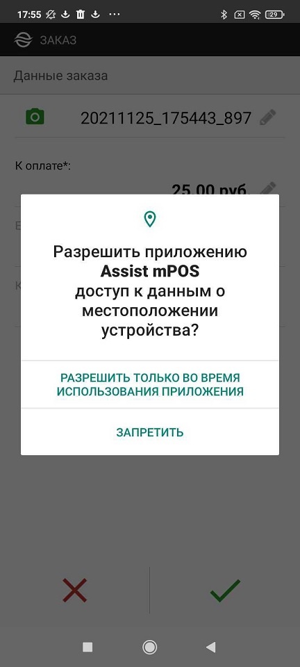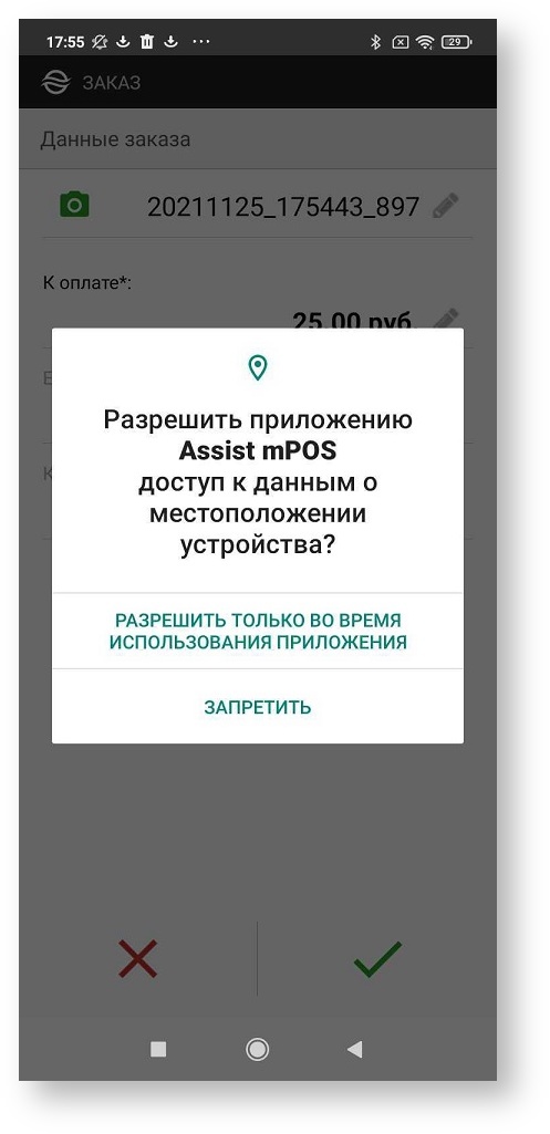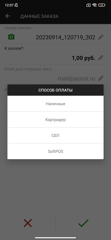 Оплата заказа c использованием мобильного приложения SoftPOS