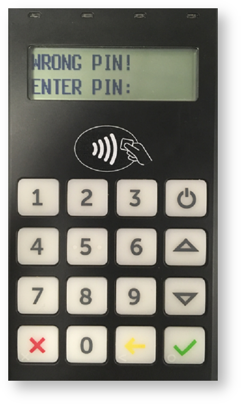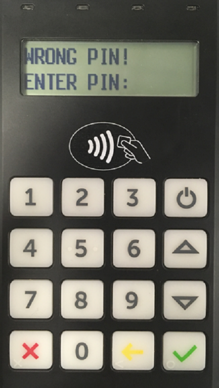 Если PIN-код введен неправильно, на экране беспроводного терминала это также будет отображено: