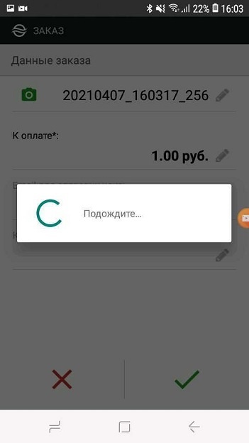 Обновление результатов платежа осуществляется автоматически, при этом отображается значок обновления в строке статуса заказа.