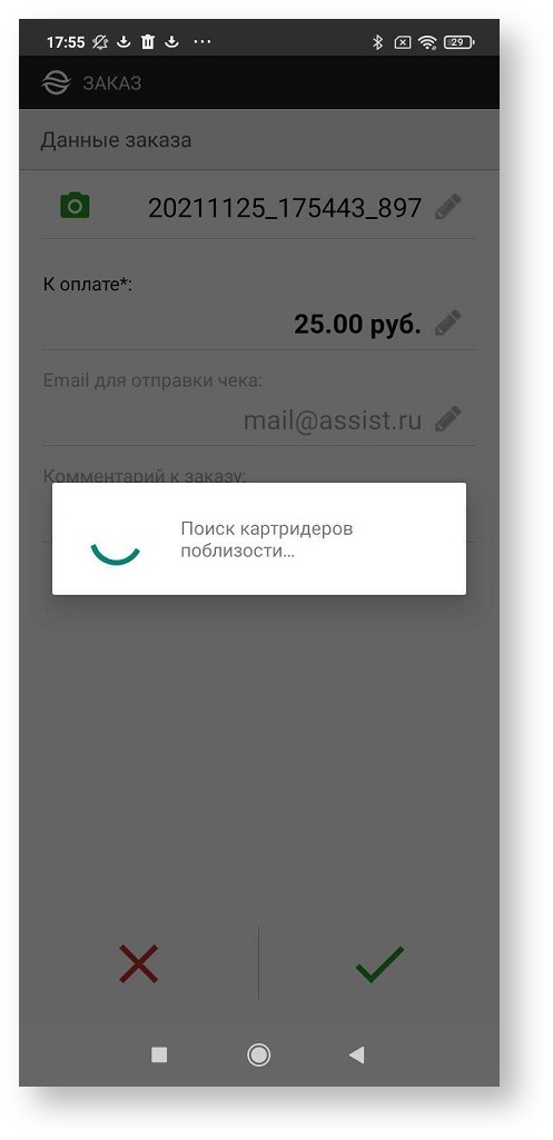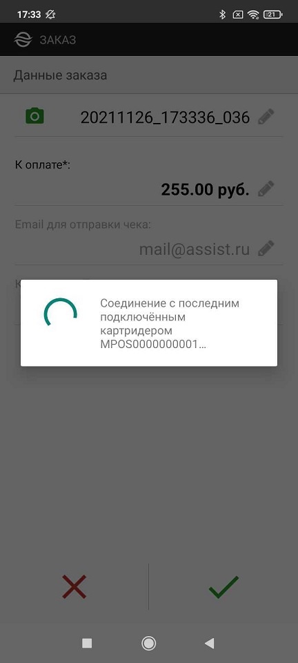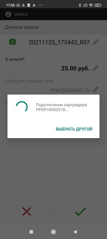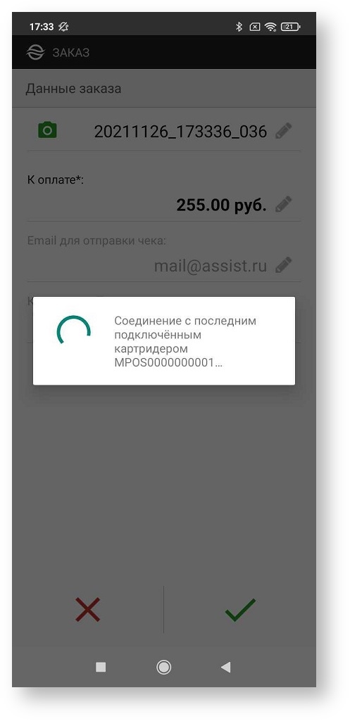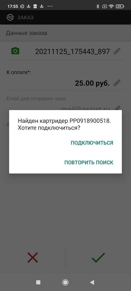 Если перед оплатой соединение смартфона и беспроводного терминала не было установлено или ранее установленное соединение по каким-либо причинам было потеряно, то приложение инициирует создание такого соединения.