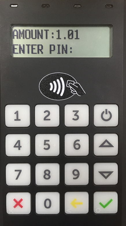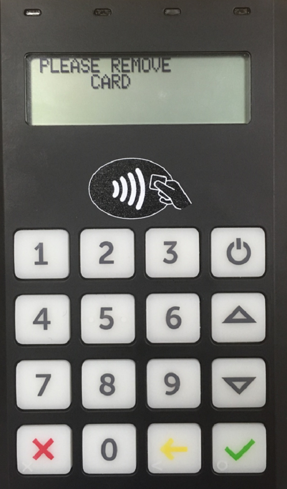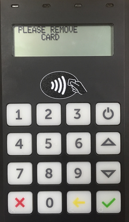 PIN-код вводится на беспроводном терминале. После успешного ввода PIN-кода покупателю предлагается забрать карту: