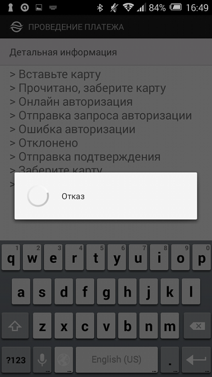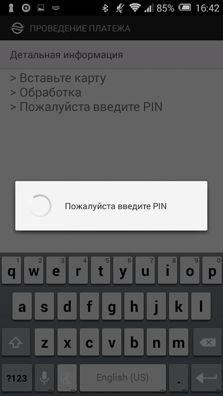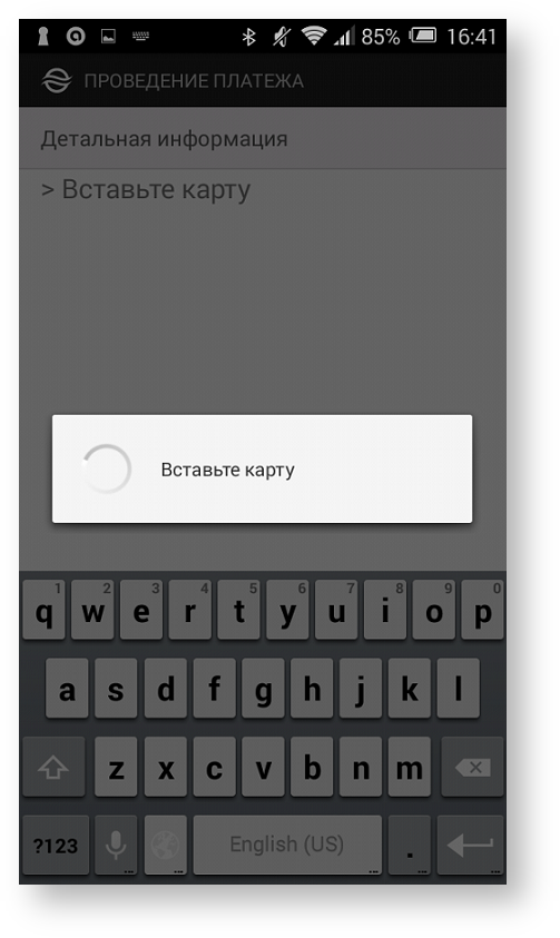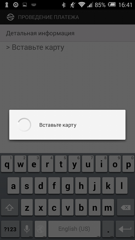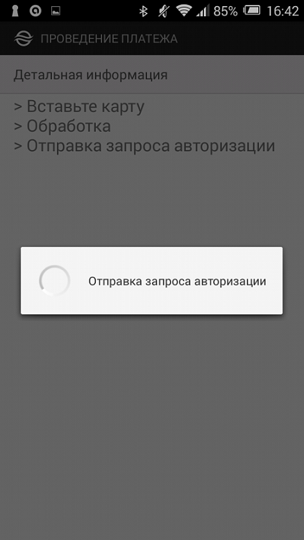 При успешном подключении беспроводного терминала сразу же начинается процесс оплаты.