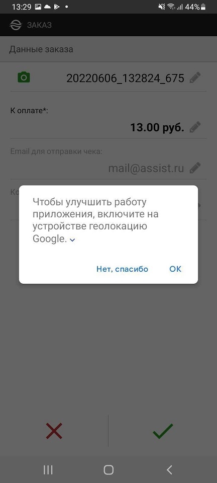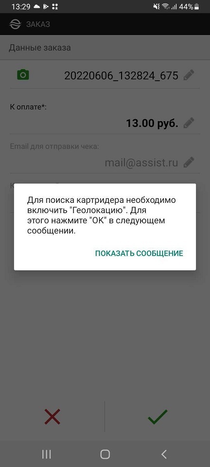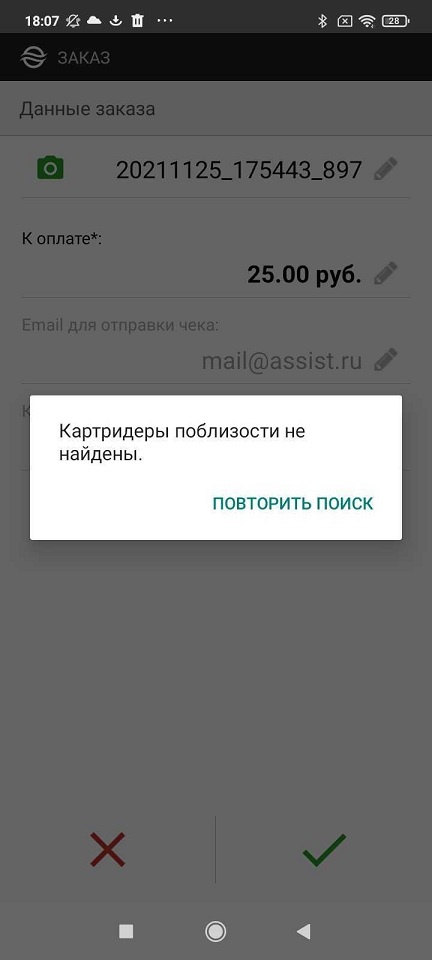Прием платежей наличными позволяет использовать приложение Assist mPOS и без подключения к интернету. В этом случае после подключения к интернету данные для фискализации автоматически отправятся в АПК Ассист, а чек по электронной почте - покупателю. При этом на экране смартфона отображается сообщение "Фискальный документ для заказа №… передан в Ассист". Проверить данные чека по конкретному заказу можно в ЛК АПК Ассист.