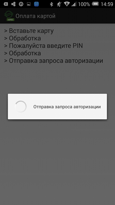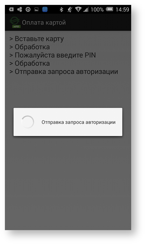 В процессе обработки запроса авторизации рекомендуется следить за сообщениями на экране беспроводного терминала.