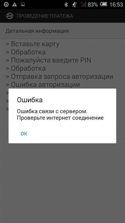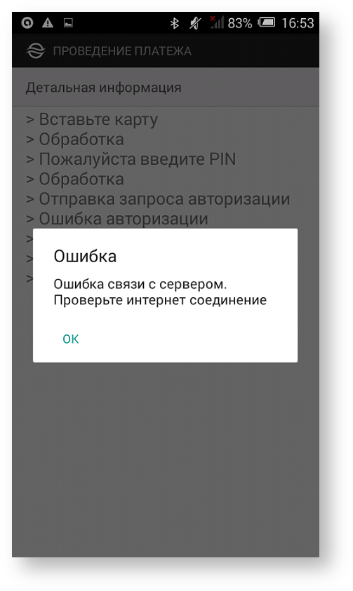 Если в процессе работы с приложением было потеряно сетевое соединение, то на экране смартфона появится сообщение: