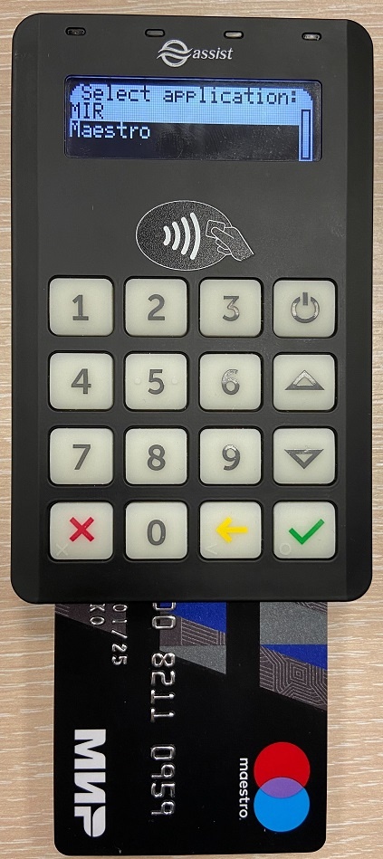 При оплате с помощью чипа и использовании беспроводного терминала Bluepad выбрать платежную систему для осуществления платежа можно непосредственно на терминале.