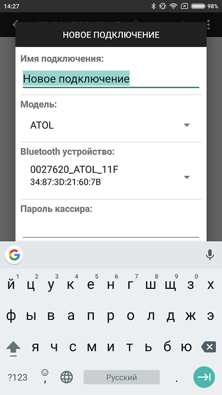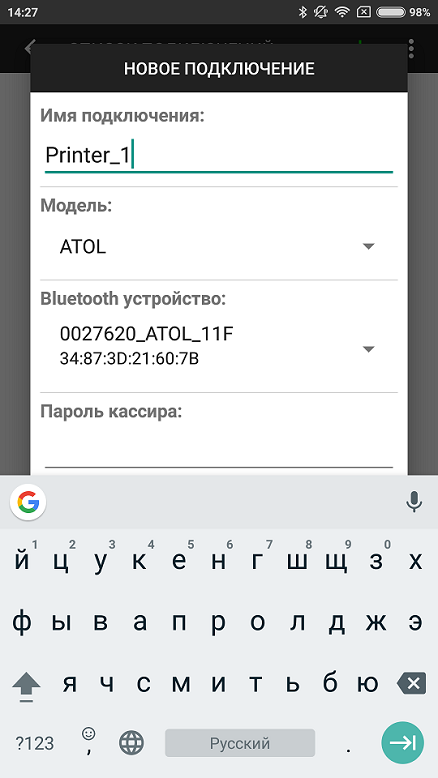 В разделе «Имя подключения» следует указать название фискального принтера.