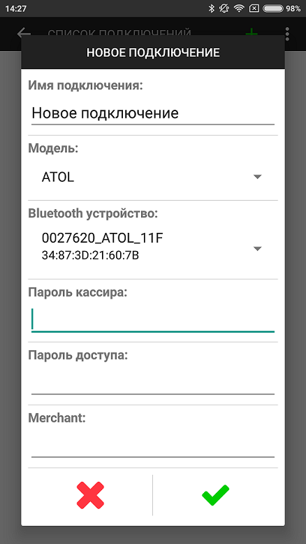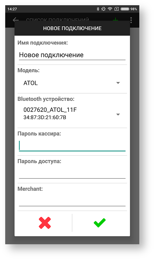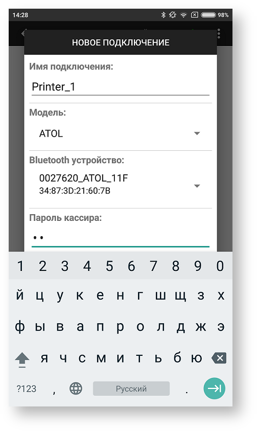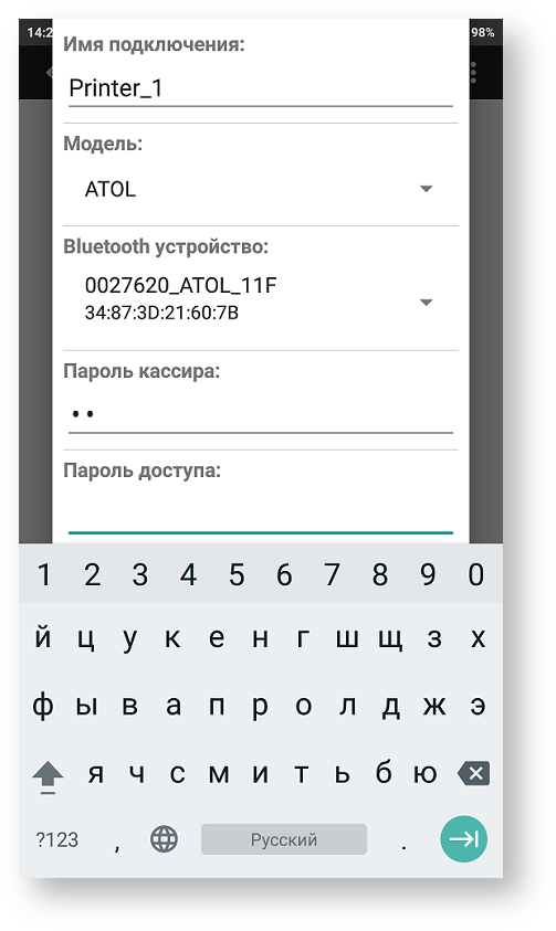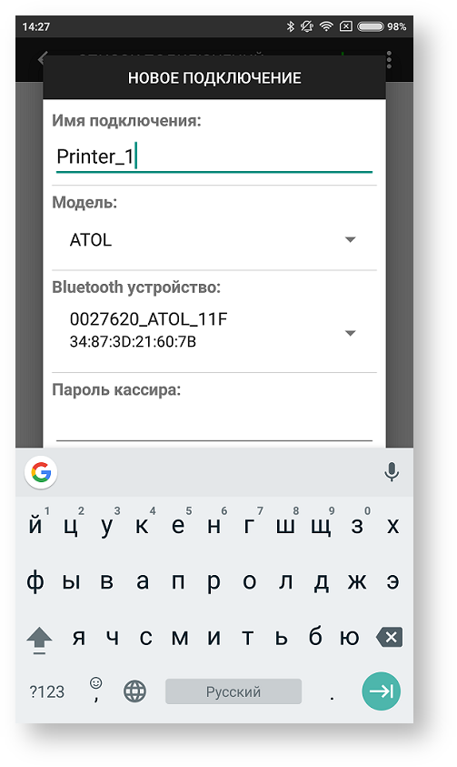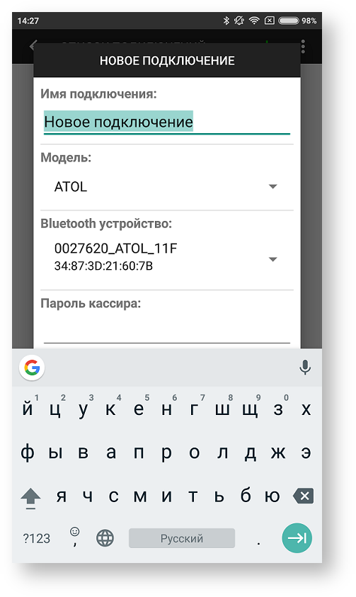 Если в разделе «Bluetooth устройство» ничего не отображается, необходимо подключить ККТ, выбрав в настройках смартфона соединение по Bluetooth и запустив поиск ближайших устройств..