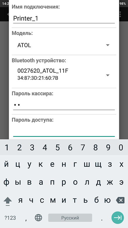 В разделе «Пароль доступа» следует указать пароль доступа к подключенному ККТ.
