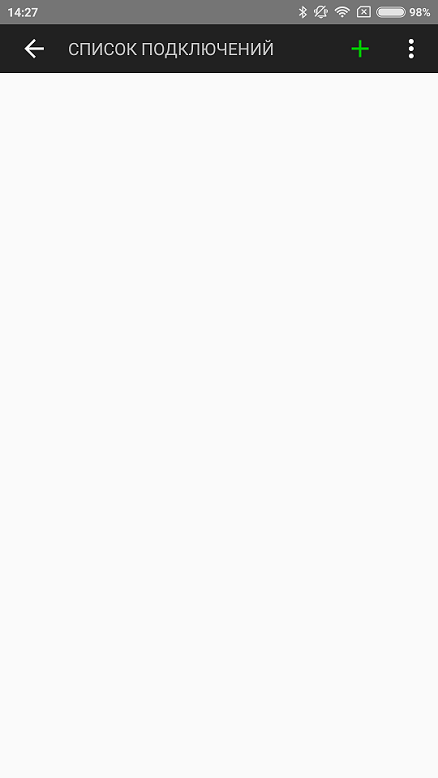 Для добавления нового подключения необходимо нажать на кнопку «+», после этого откроется экран настроек подключения.