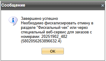 Это дополнительное предупреждение оператору о том, что фискализацию проведенной отмены необходимо выполнить отдельно.