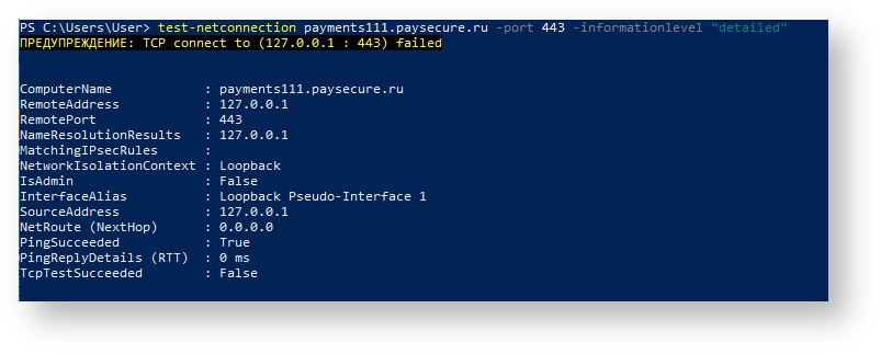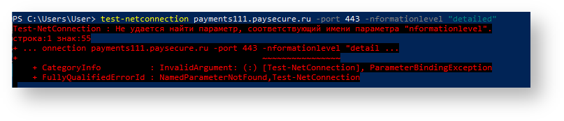 test-netconnection payments111.paysecure.ru -port 443 -informationlevel "detailed"