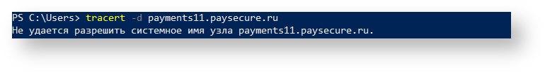 Для определения маршрута, то есть пути прохождения пакетов до сервера payments111.paysecure.ru, используется команда в Powershell: