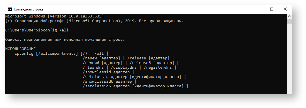Проверить текущие настройки сетевых интерфейсов можно с помощью команды в командной строке (cmd):