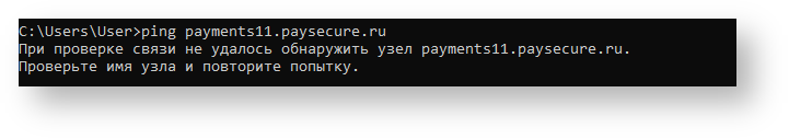Для проверки целостности и качества соединения с сервером payments111.paysecure.ru используется команда в командной строке (cmd):