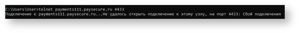 Для проверки доступности 443 порта (HTTPS) сервера payments111.paysecure.ru из сети пользователя применяется команда: