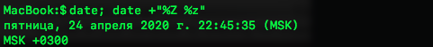 Вывести текущую дату и время, а также часовой пояс в системе можно с помощью команды в терминале:
