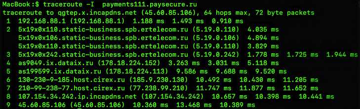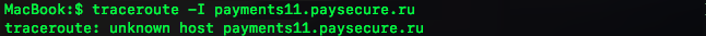 Для определения маршрута, то есть пути прохождения пакетов до сервера payments111.paysecure.ru, используется команда в терминале: