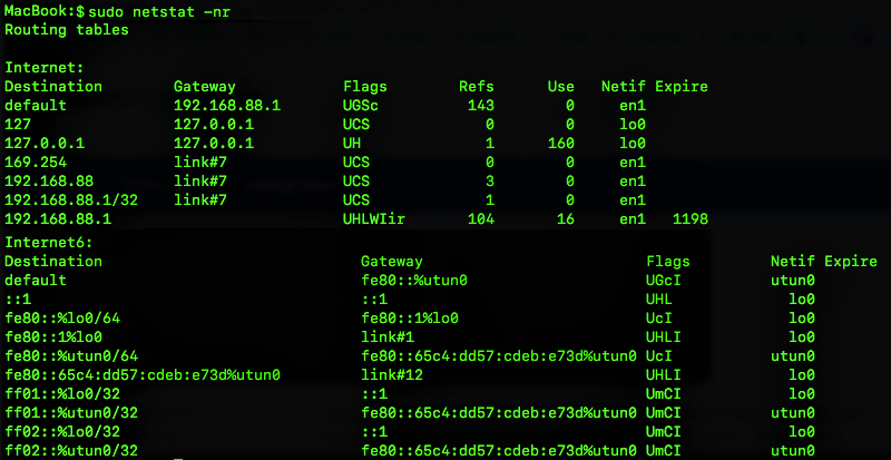 Вывести на экран все содержимое таблицы IP-маршрутизации можно с помощью команды в терминале:
