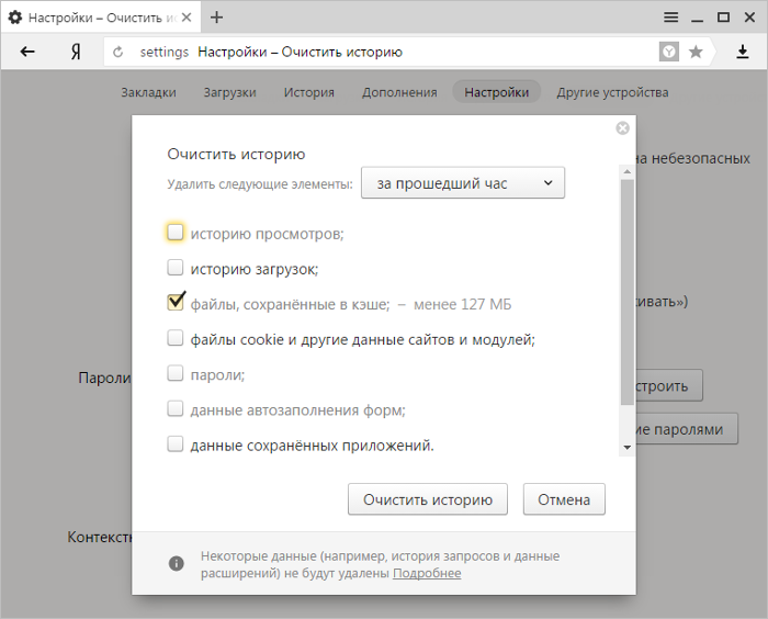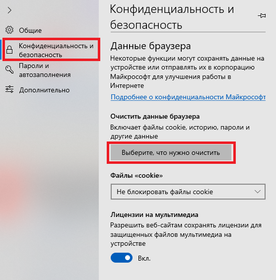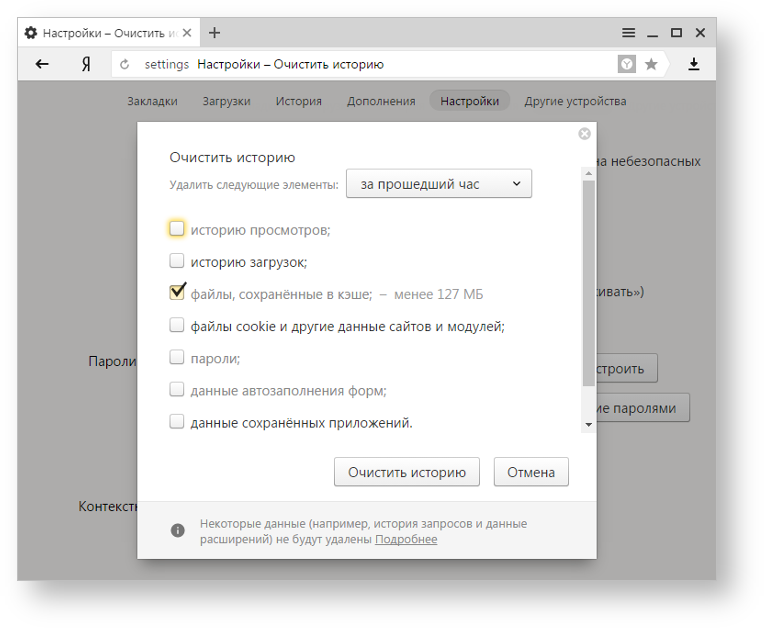 - в подразделе Очистить данные браузера нажать кнопку Выберите, что нужно очистить;