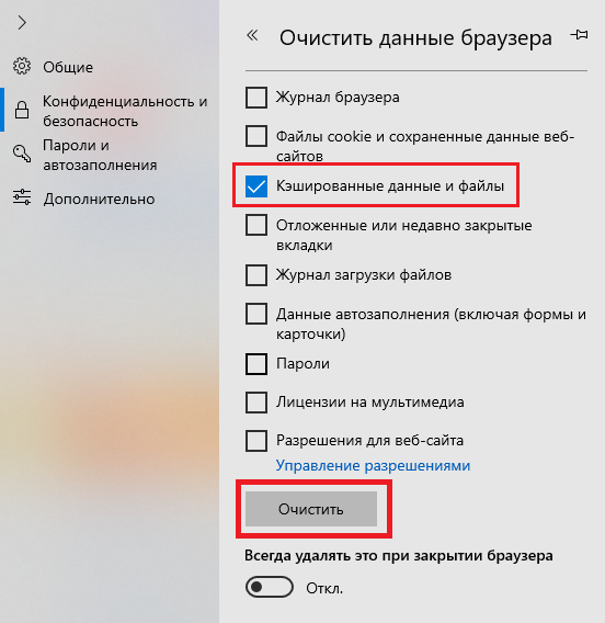 Для очистки кэша браузера нужно выполнить следующие действия: