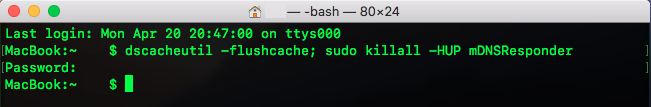 dscacheutil -flushcache;sudo killall -HUP mDNSResponder