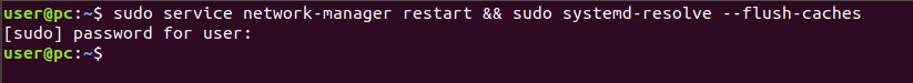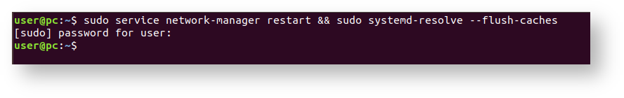 sudo service network-manager restart && sudo systemd-resolve --flush-caches
