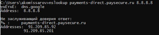 nslookup payments-direct.paysecure.ru 8.8.8.8