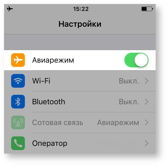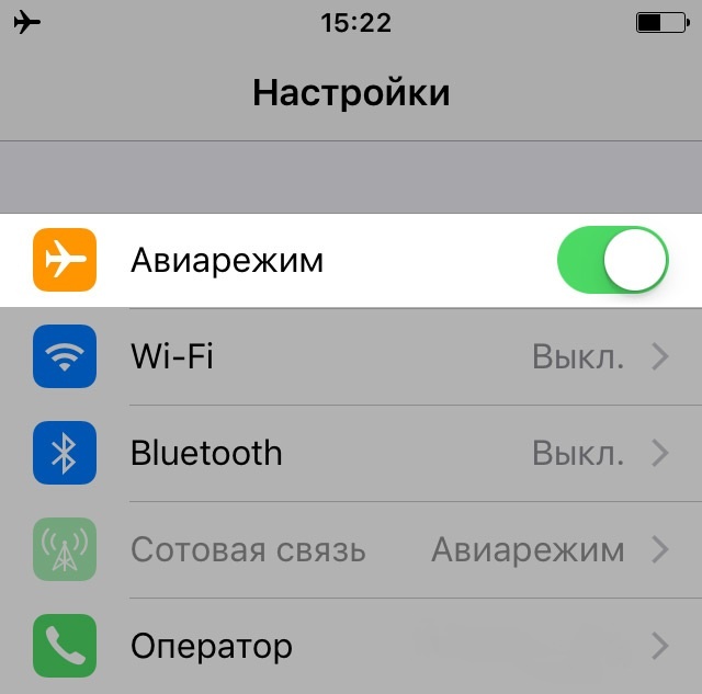 - через 15 секунд можно снова нажать на значок Авиарежим, чтобы его отключить.