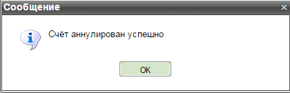 Если аннулирование счета подтверждается, выдается сообщение об успешно выполненном действии.