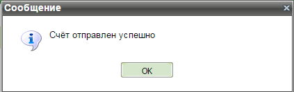 После отправки счета выдается сообщение об успешно выполненном действии.
