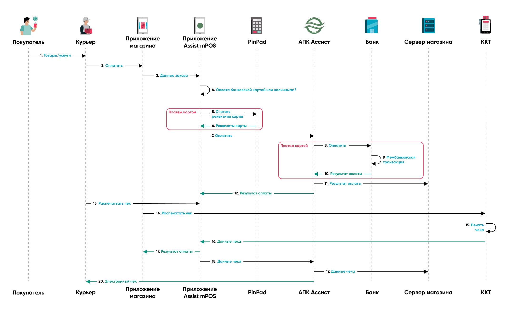 - Сервер АПК Ассист возвращает результат оплаты в приложение Assist mPOS .