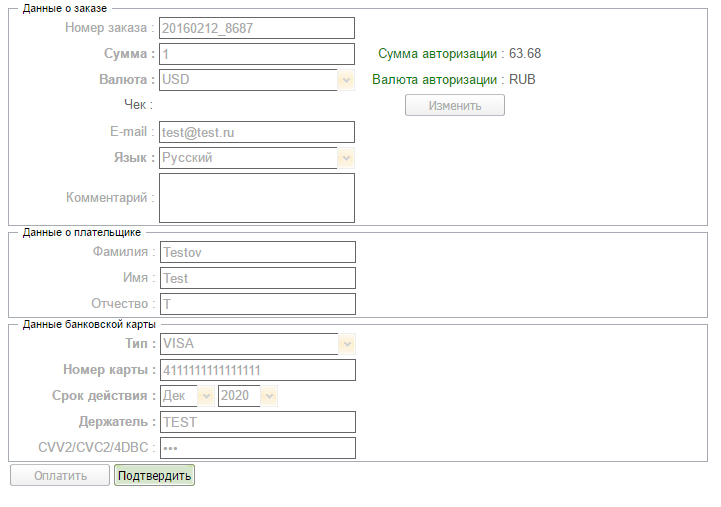 - рядом с полями «Сумма» и «Валюта» появятся поля «Сумма авторизации» и «Валюта авторизации» с соответствующими значениями;