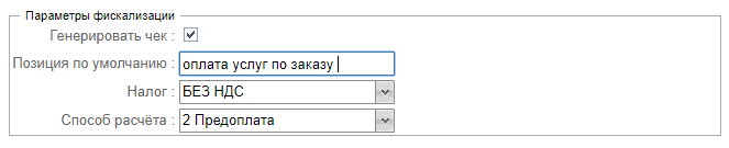 По умолчанию после успешного проведения платежа генерируется фискальный чек, эту функцию можно отключить с помощью соответствующего чек-бокса.