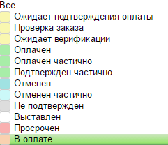Справа над таблицей счетов имеется чекбокс «Выделять статусы цветом». Используя эту настройку, можно выделить различными цветами отображаемые в таблице счета по их статусам: