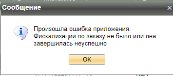 Если фискализация данного заказа не проводилась или прошла с ошибкой, чек на передачу товара не формируется и выдается следующая ошибка: