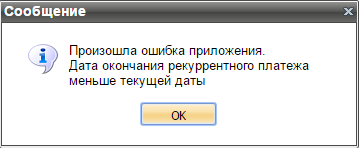 Если на момент выбора в контекстном меню пункта «Замена карты» срок данного рекуррентного платежа уже истек, то есть для этого платежа замена карты не имеет смысла, появится следующее сообщение: