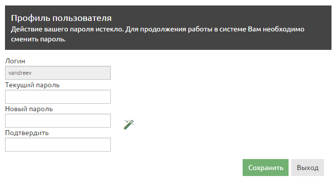 В целях безопасности каждому пользователю могут быть назначены дата и периодичность изменения пароля. При наступлении назначенного срока пользователю предлагается задать новый пароль: