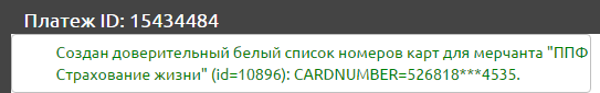 Результат нажатия одной из кнопок отображается в верхней части окна детализации платежа: |