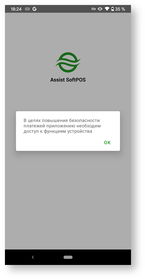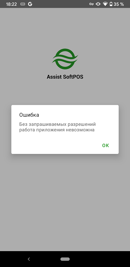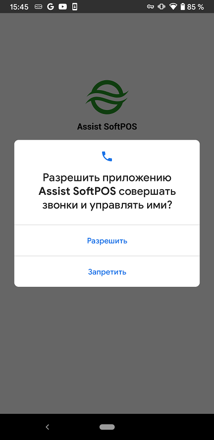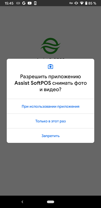 При первоначальном запуске приложения Assist SoftPOS необходимо подтвердить разрешение использования этим приложением камеры и телефона: